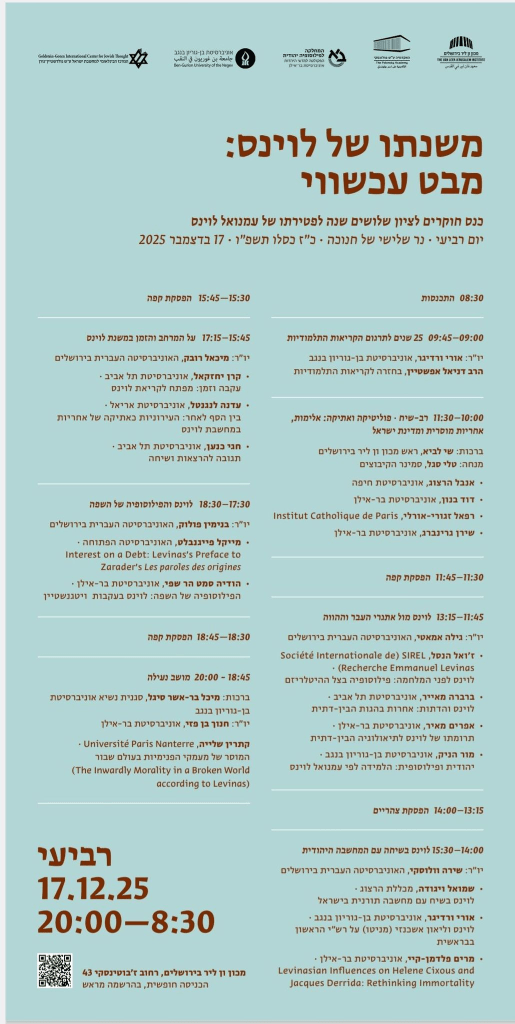 2 תגובות על 'כנס – משנתו של לוינס: מבט עכשווי'